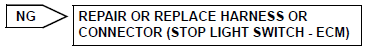 4 CHECK HARNESS AND CONNECTOR (STOP LIGHT SWITCH - ECM)