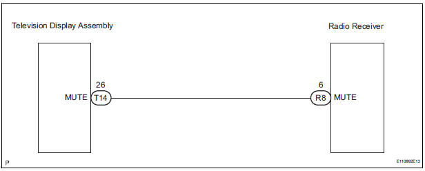 The radio receiver controls the volume according to the MUTE signal from the television display assembly.