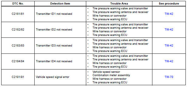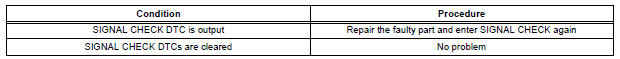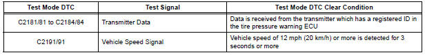 After completing signal check for each inspection item, the DTCs for systems that are determined to be normal by the tire pressure warning ECU will be erased.