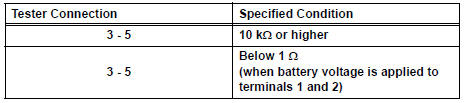 If the result is not as specified, replace the starter relay assembly.