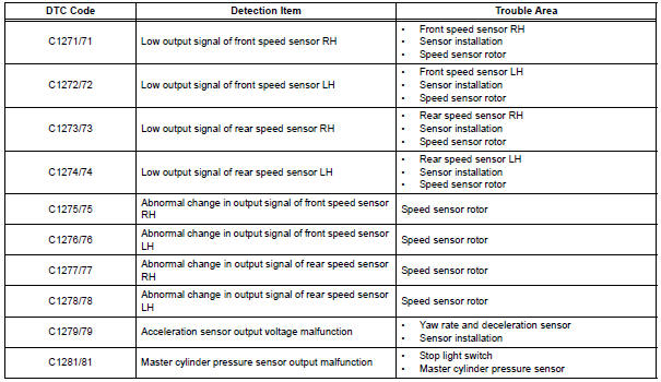 HINT: The codes in this table are output only in Test Mode (signal check).